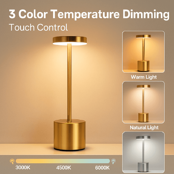 Elevate your space with the Dimmable Rechargeable Table Lamp, designed to bring both modern elegance and versatile lighting to your home. This lamp offers three adjustable color temperatures—warm, natural, and cool—allowing you to create the perfect atmosphere for any activity, from cozy evenings to focused work sessions. Its intuitive touch control makes adjusting brightness a breeze, while the sleek, minimalist design complements a wide range of interior styles. USB rechargeability ensures convenience and portability, making it a sophisticated yet practical choice for bedrooms, offices, or living rooms.